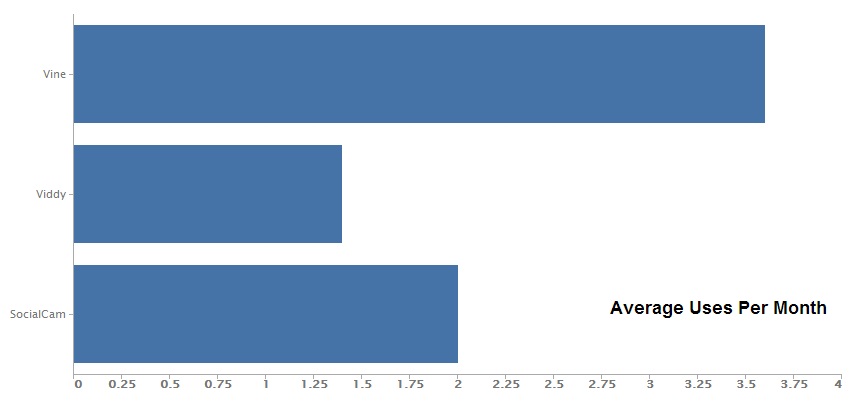 We were concerned that this might not be an apples-to-apples comparison since many users may have just been “trying out” Vine in this month. So we looked at the average number of times each of these tools was used during the month. As it turned out, repeat usage of Vine was actually more likely than the other apps.