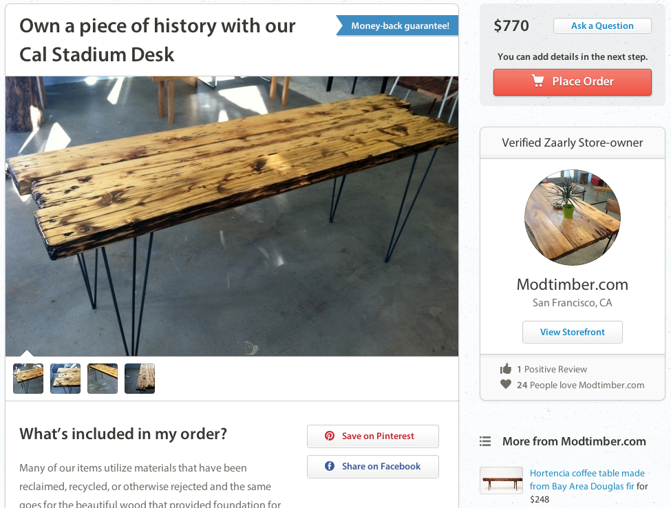 The startup spends time interviewing them, getting to know them, because it wants to help them build sustainable online businesses, and if sellers aren’t responding promptly, can’t demonstrate an existing network (and three or four referrals) or the ability to sell quality items, then it declines. It’s a high-touch way of vetting candidates, not the same as just filling out a short online form and getting up and running in 15 minutes. Zaarly has an editorial team that helps sellers create the text in which they describe their goods or services, and, taking a page from the Airbnb model, sends a photographer to take photos of their products.