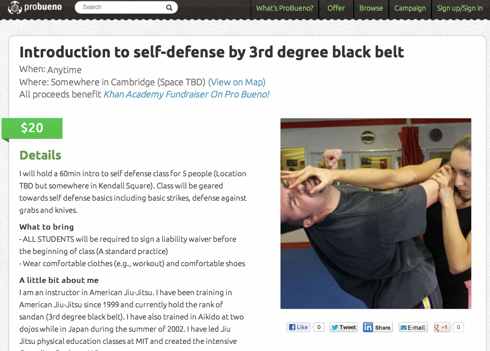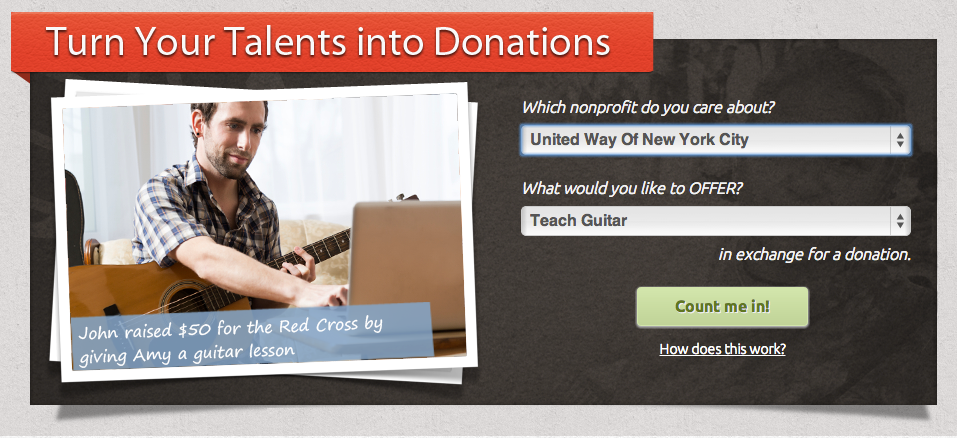 Imagine that you’re a pretty good drummer, you’re in a band, and you’d like to give lessons. You could charge for these lessons, of course, but you’re really into helping out charities. A site called ProBueno is a marketplace, founded by MIT alums, to shop your talents in exchange for charitable donations. When you think about it, all this really is is technology-empowered volunteering.