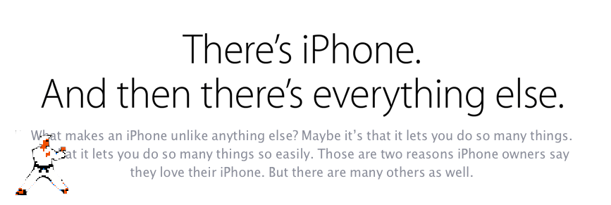 Apple doesn’t need a miracle, but clearly the marketing department thinks the company needs to step things up. To wit: Apple’s latest iPhone web page, which touts “There’s iPhone. And then there’s everything else.” It’s a brassy, ballsy statement worthy of Steve Jobs himself and it seems to show an Apple undaunted yet clearly aware that it can’t just say nothing about the competition.