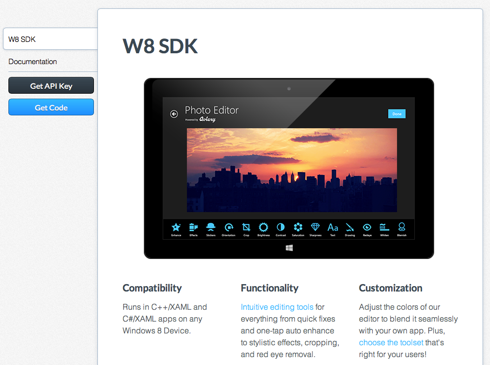 Aviary, the company that provides a fully customizable SDKs for applications that want to include photo editing, has announced the launch of its Windows 8 SDK in collaboration with AMD and Microsoft. This means that apps for any Windows 8 PCs and tablets can start including photo editing immediately, not just ones with AMD processors.
