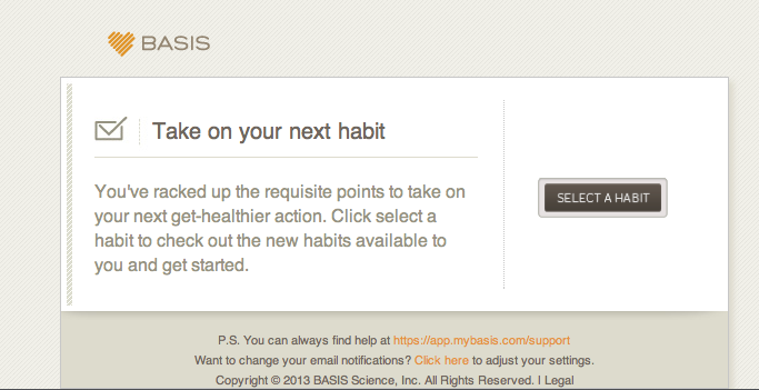 Basis uses the concept of “habits” to motivate you to get off your duff. Some of the habits are simple – one asks you to simply wear the watch – while others encourage you do take a certain number of steps a day or spend a certain amount of time sleeping. You unlock various habits by completing challenges over time and you begin with only a few possible “goals” during your initial set up.