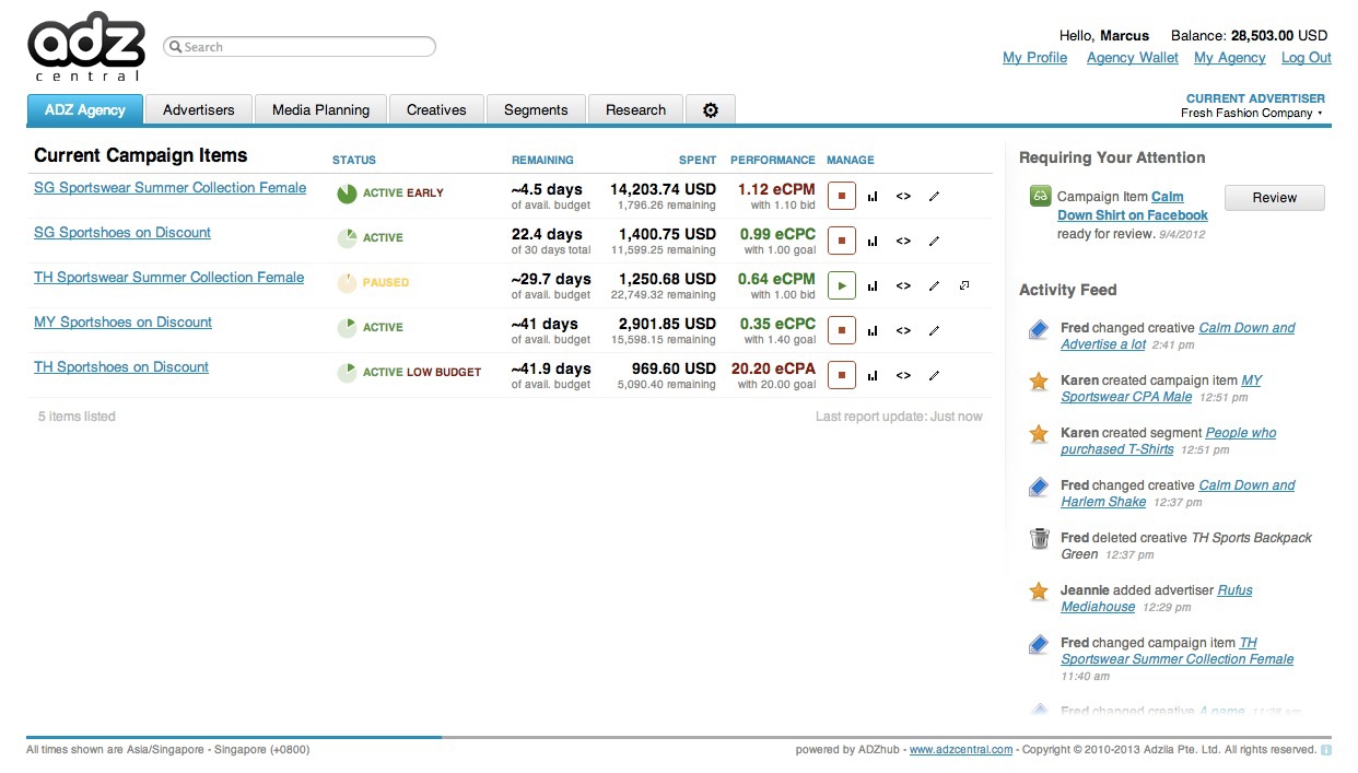 It’s the Asia angle that he’s counting on. AdzCentral competes with U.S. giants like Rocket Fuel and Acceleration (acquired by WPP), but being in Asia allows it to serve advertisers or Asian subsidiaries of MNCs, said Behnam. It counts brands like SingTel, Standard Chartered, Hyundai and 3M as clients, and has served about 1,000 companies over a base of 100 clients in its three years of operations.