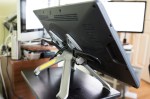 There’s also the portability factor: the Cintiq simply isn’t. It’s like any 20+ inch display, but slightly bigger on account of the adjustable angle stand and the built-in ExpressKey and touch strip controls. Plus it’s tethered to your computer via a DVI cable (and whatever adapter you require, perhaps to Thunderbolt or HDMI) and a USB cable that handles the pressure sensitivity duties. But, you can actually slide the Cintiq 22HD off its stand, should you want to lay it in your lap for comfort’s sake, though you’d better have a pretty wide and accommodating lap to use it this way.