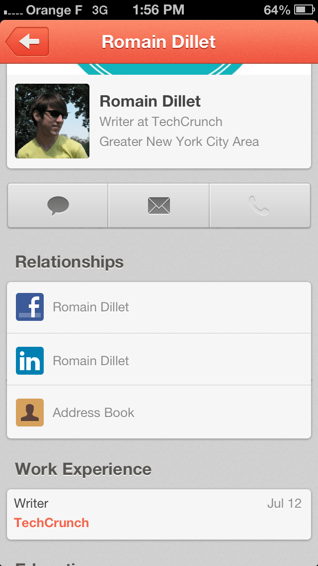 Now, when you create an event and invite someone, you’ll get LinkedIn information, links to Facebook, your address book and LinkedIn, and the ability to text, call or email someone very easily. The app also uses Facebook profile pictures and cover photos. While Sunrise is not an address book, that contact info is very informative yet doesn’t require any effort on your part.