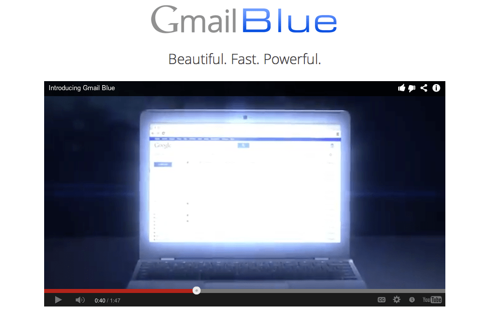 The Google April Fool’s train continues with the announcement of “Gmail Blue.” Yes, it’s a version of Google’s email service where everything is the color blue. The YouTube one from earlier was OK, and the Nose one was just so-so, but I’d actually use this product if it existed, especially since it took six years to “develop the technology.”