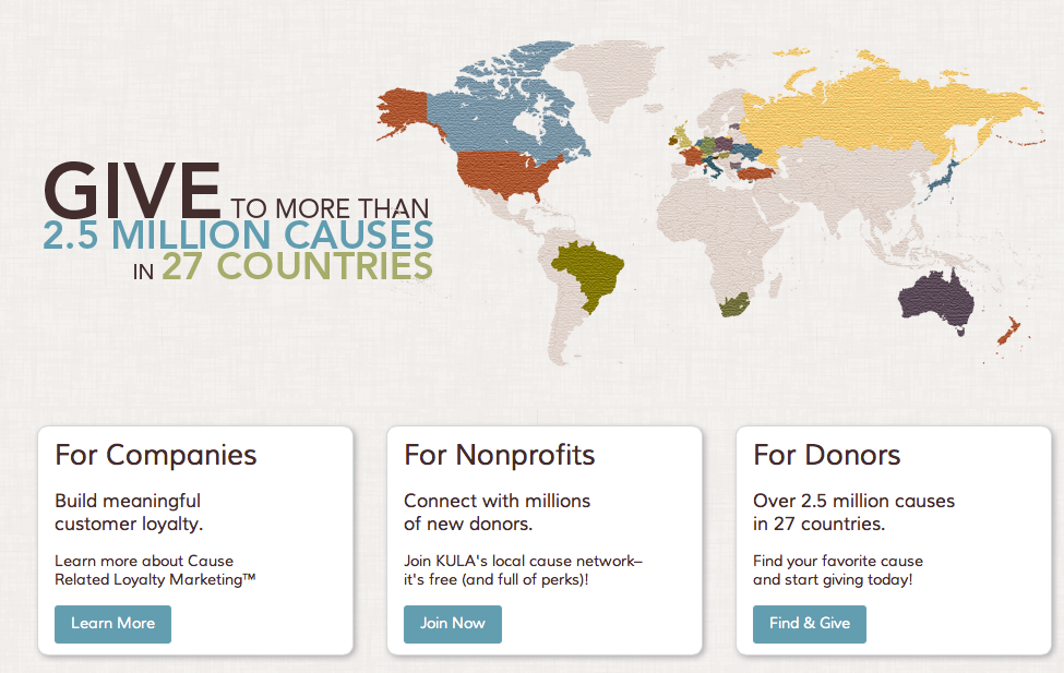 According to the research firm Colloquy, at least $16B worth of reward points and miled went unredeemed in 2011 alone. KULA has built a service to turn those unused rewards into cash contributions for over 2.5M causes around the world. By working with brands on building this three-way bridge between companies, causes and consumers, KULA is making a real difference in over 80 countries all over the world. Since there are so many causes in KULA’s database, it’s easy to find a few that you really care about, and then you’re motivated to put your unclaimed rewards to good use.