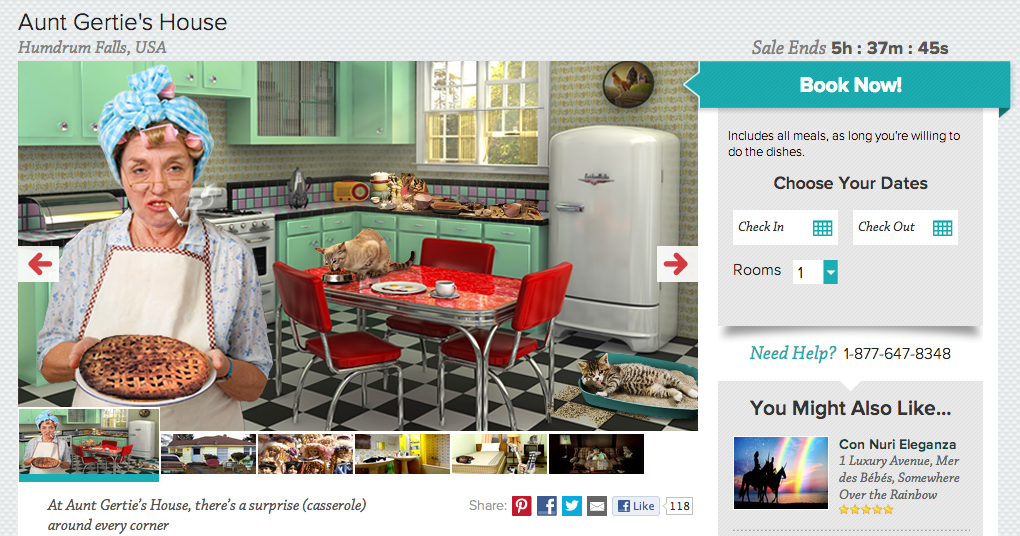 TripAdvisor and SniqueAway are offering you a grandiose little vacation to Aunt Gerdie’s house. It’s just around the corner. Here’s the description: