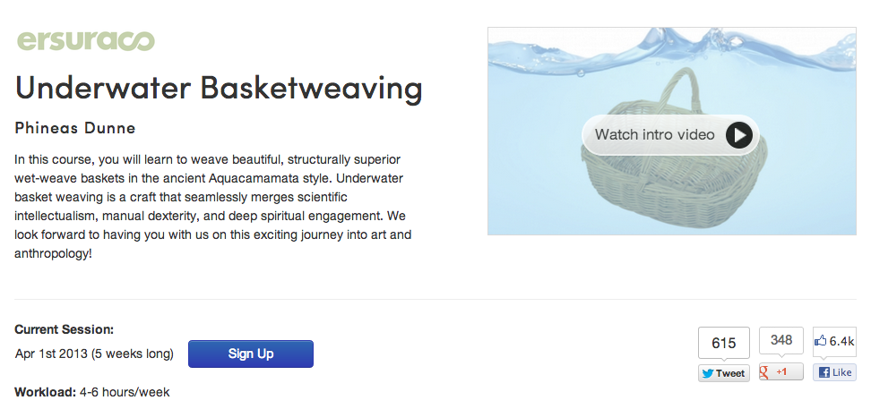 Coursera is really stepping up its game today. Some have mocked MOOCs and online education as trivial, a passing fancy and have said that they’re “of low quality.” Well, Coursera wants to show you what’s what with the newest addition to its roster of free, online courses: Underwater Basketweaving. Yep, you haven’t lived until you’ve tried to weave wicker in the deep end during public swim.