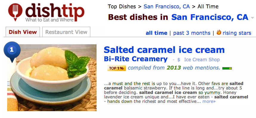 TipSense started by building DishTip, which tells you the most buzzed-about dishes at nearby restaurants by crunching millions of reviews, mentions, and photos of food on the web. By default you see the best of your city, but you can set it to your exact address for hyperlocal tips. You can filter by price, classification (e.g. vegetarian), and more, or look at top restaurants, cuisine types, or ingredients.
