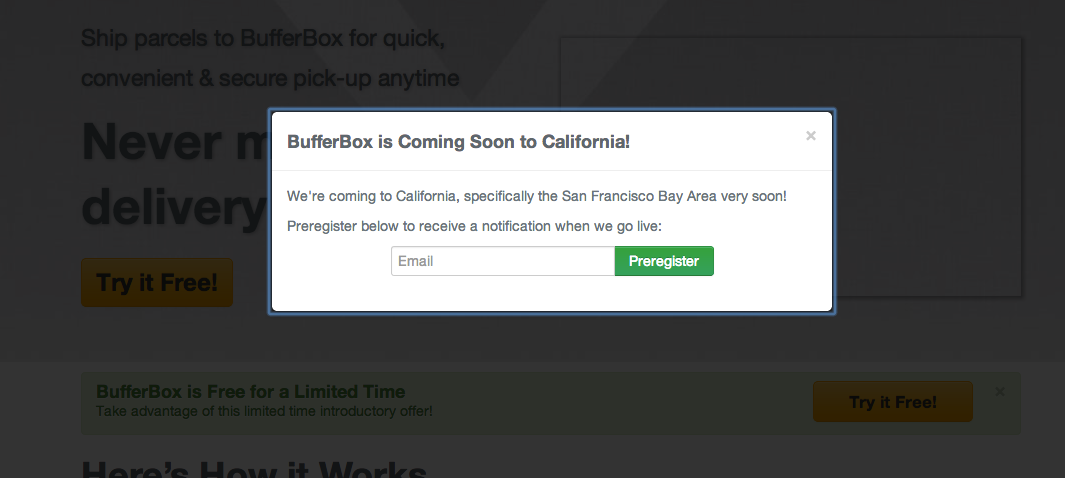 We know that the current package delivery system here in the United States is broken, and the government-funded postal service is pulling back on things like…delivering on the weekend. Google is clearly getting into the space in a big way, and the tease on Bufferbox’s homepage, which probably picked up my browsing location, says it all: