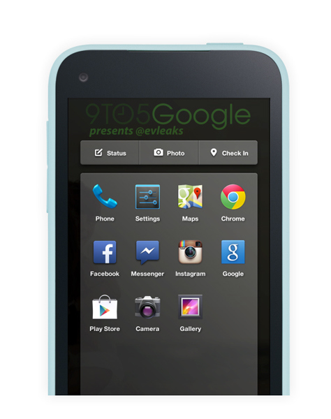 Facebook is set to debut a special Android product tomorrow, and now 9to5Google has an early look at what we might see, courtesy of Evleaks. The screens depicted on renders of the so-called HTC First smartphone hardware being created by the Taiwanese company. The images show tweaks to the basic Android UI that include easy access to status updates, photo sharing and check-in functions, as well as an emphasis on images.