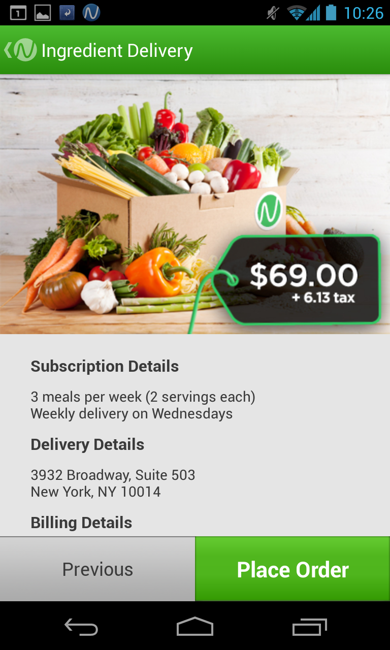 Priced at $69 plus tax per-week for three two-portion meals, the HelloFresh offering shows up in the Noom app (available for Android), although the customer relationship — subscriptions and payments — are solely managed by Noom, with HelloFresh powering the offline elements of recipe design, ingredient sourcing and product delivery. To the end-user, it’s almost entirely branded as a Noom feature, with the only giveaway being a “powered by the award-winning HelloFresh team” tagline. As we’d expect, the partnership does, however, include a revenue share element with HelloFresh.