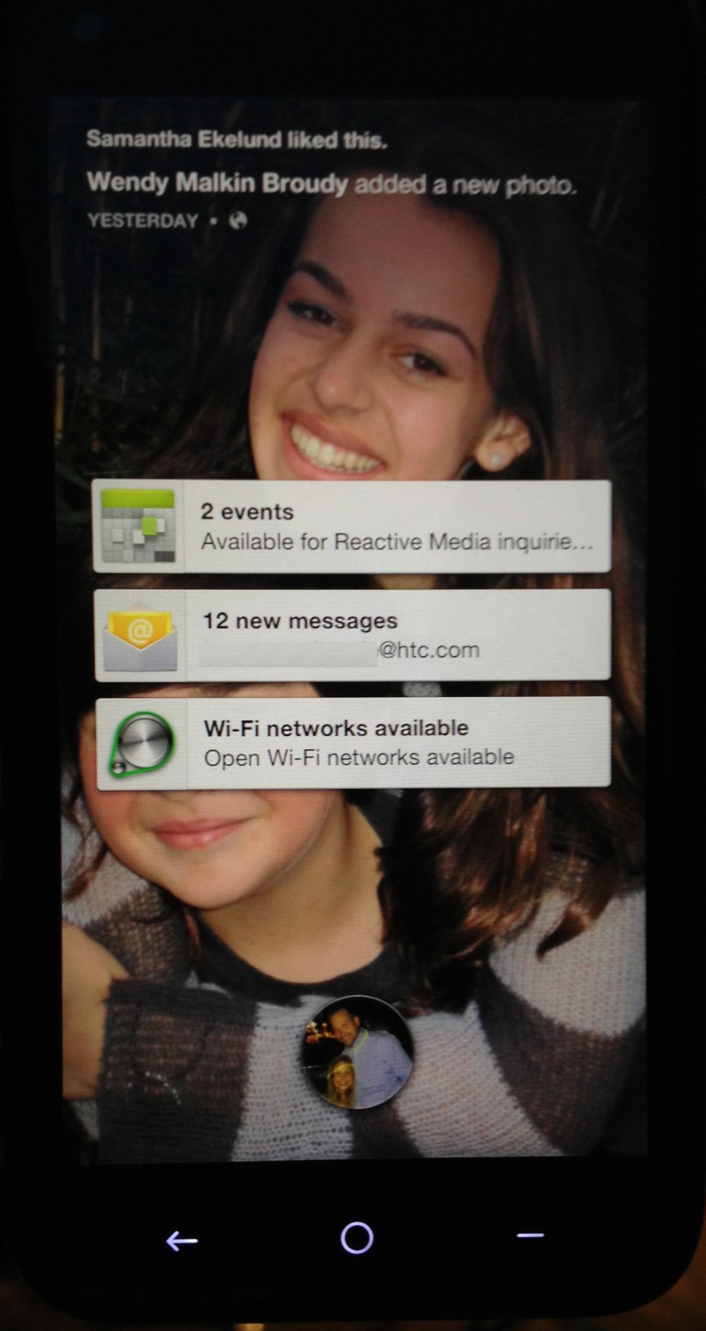 HTC’s President Jason Mackenzie explained why HTC put in this extra effort to optimize Home for the First. “It’s to provide a consistent experience. To offer the easiest, simplest solution for the customer. They shouldn’t have to get Chat Heads or messages from Facebook one way, and find out if you have text messages or email some other way. This delivers on Facebook and Mark’s vision of bringing your friends to the forefront instead of the applications.”