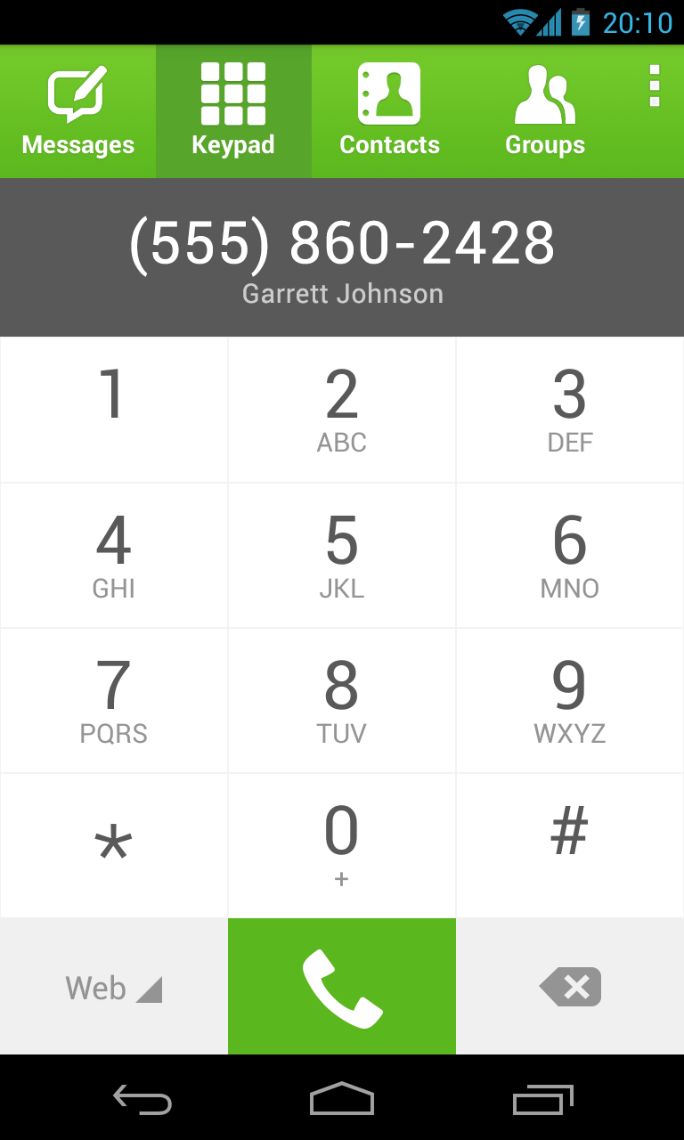 Like the iOS version, the new app also includes support for calling and texting over Wi-Fi, 3G, 4G or cellular voice networks, support for group messages, the ability to add auto-responders and contacts, and more. In addition, it includes support for call transfers – a feature that is currently in the Apple App Store review process, expected to launch in a week or so.
