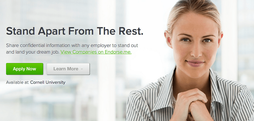 James Ingallinera and Trey Griffith founded Endorse.me last year to give college jobseekers a secure, online platform through which they can share confidential information with prospective employers, and, in turn, give companies a better way to identify and hire top collegiate talent. Endorse.me is officially launching today at 17 campuses across the U.S., including Stanford, Notre Dame, Cornell, Yale, Harvard, Duke, Dartmouth, UVA, Berkeley and Brown, to name a few, with plans to expand to more colleges in the upcoming academic year.