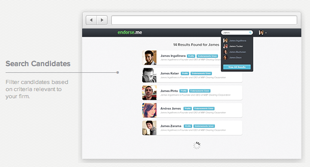 At launch, the founders tell us, Endorse.me is targeting the financial and technology sectors specifically, but plans to expand its scope in the coming year. That means, at this point, hiring managers from companies like 10gen, Airbnb, Blackstone, Citi, Codecademy, Credit Suisse, Eventbrite, General Catalyst, HubSpot, Indiegogo, Mozilla, Pinterest, Rackspace, Salesforce.com, Spotify, Twitter and Zaarly are currently on Endorse.me and looking for candidates.