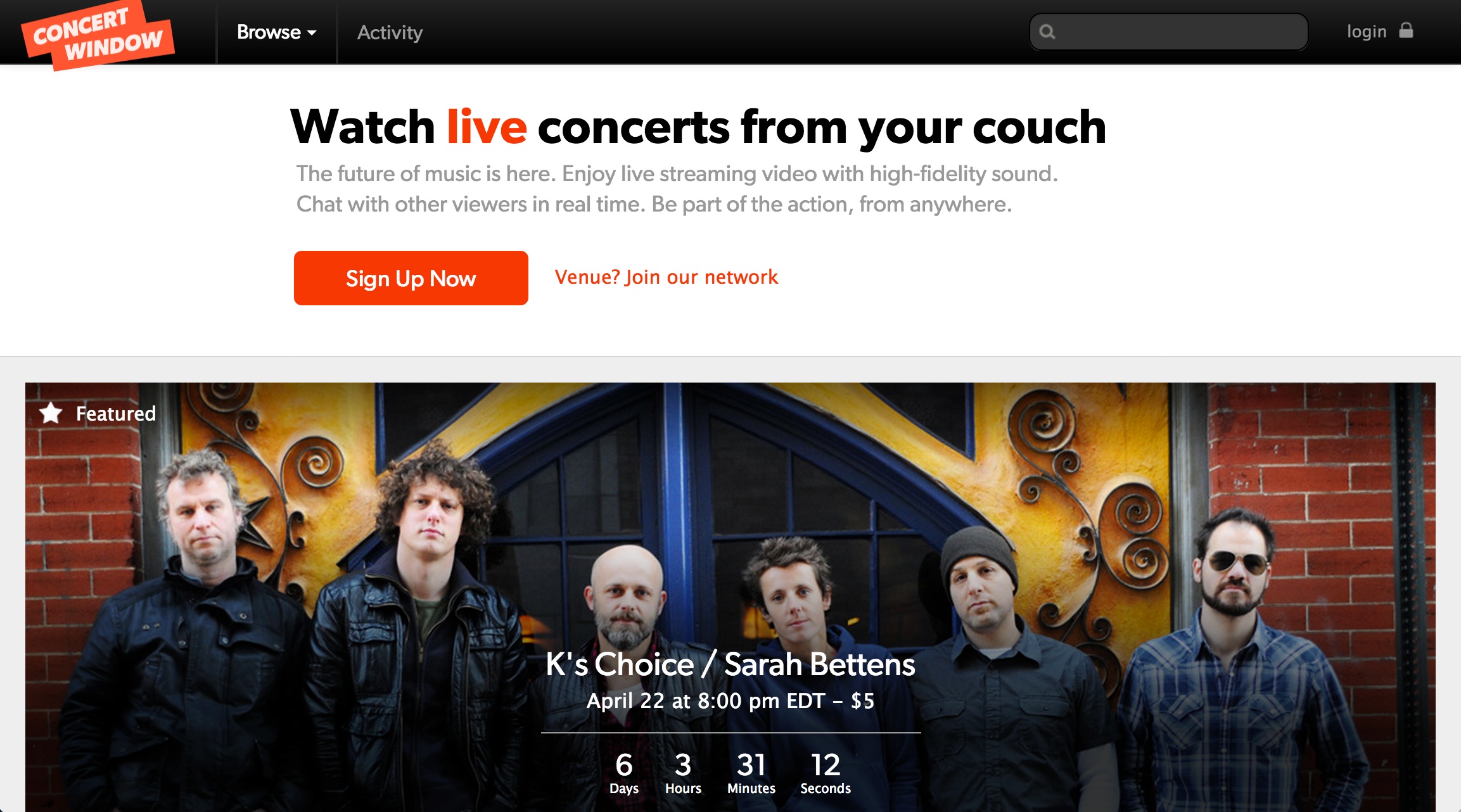 On the user experience end, Concert Window has done its best to keep online ticket prices low (under $10, depending on the concert), and distributes two-thirds of ticket sales to the venue and artist, making it a comparable revenue split to iTunes and app stores. Both the video and audio quality are high, which is a must for online concert services, and if you have a good sound system and are lazy like I am, it almost beats being there in person. By addressing these barriers, Concert Window has been able to stream 2,000 concerts with 1,500+ artists at 15 partner venues to date. To really make a dent, it will be key to offer more selection, but it’s a pretty good start.