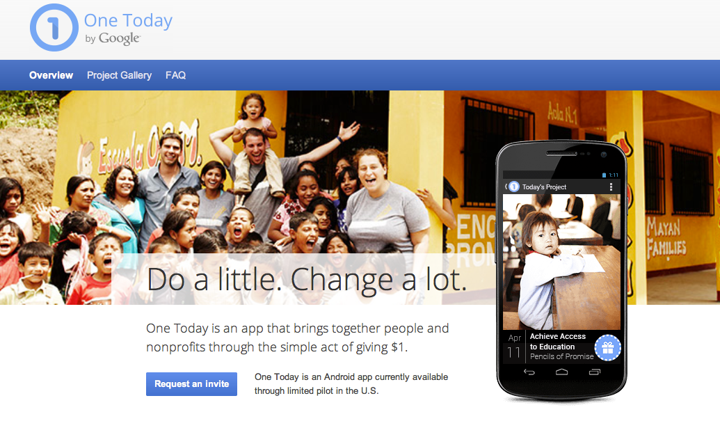 Today, Google quietly ushered in a new application built on top of its nonprofit arm, Google.org. The app is called One Today, and it’s currently invite only for Android users at this time. The aim is to get people to donate $1 to different organizations, while getting the complete information about how your donation will be used up front. This is a huge stumbling block for nonprofits usually, as people are afraid that their money won’t actually get spent on making a real difference. One Today aims to change that.