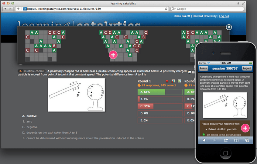 Learning Catalytics itself has been working with about 50 institutions in K12 and higher ed, and offers free accounts to instructors, with student accounts running $12/semester and $20/year.