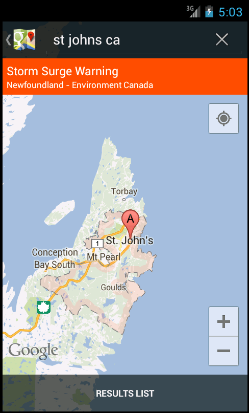 The Google Public Alerts bring warnings and notifications for severe weather changes to Google’s desktop and mobile products, including Google Maps, Google Search, Google Now and the dedicated Public Alerts page itself. The alerts are drawn from Public Safety Canada and Environment Canada, two government-run organizations that meteorological data and keep an eye out for major storm systems passing through the area.