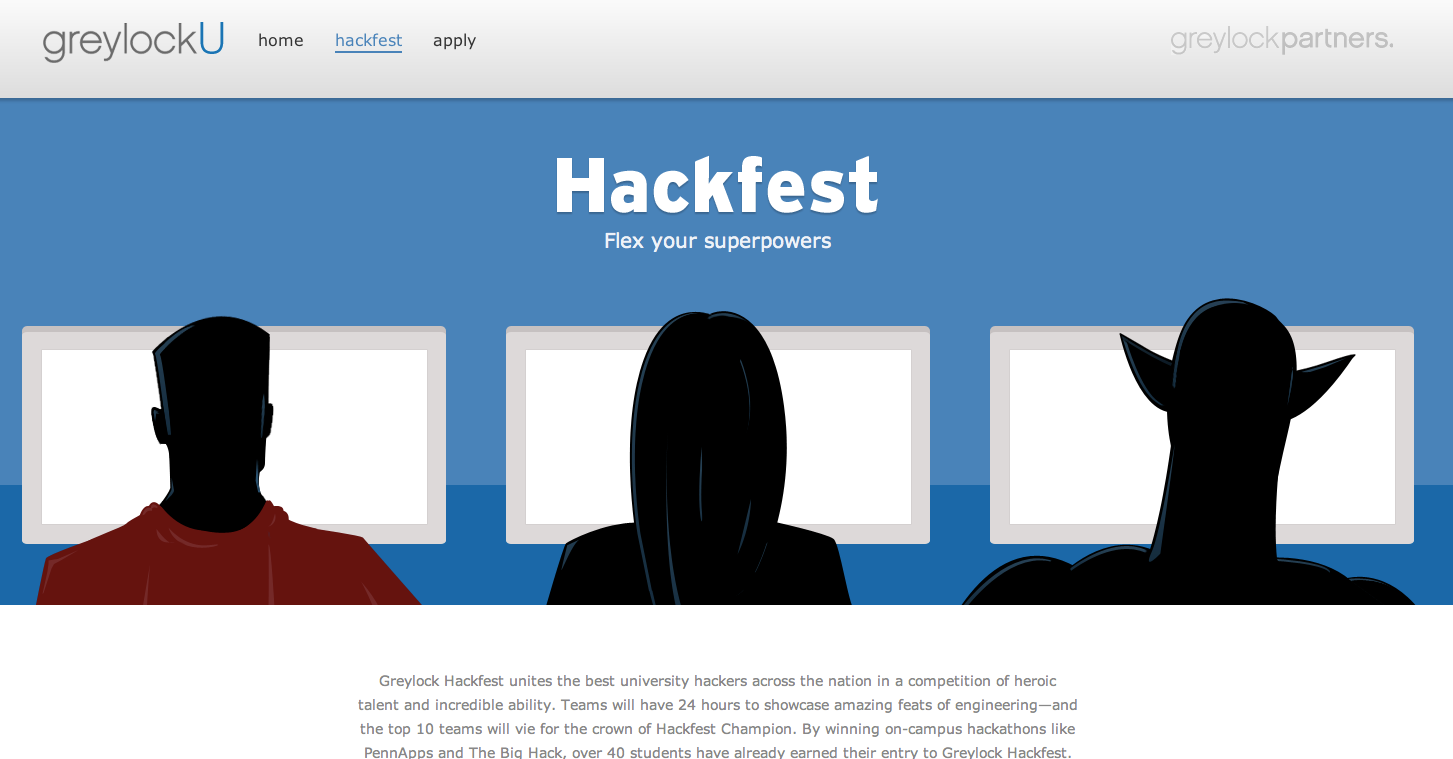 The opportunity to apply for the Hackfest coincides with the admission of winning teams from campus hackathons that have already taken place at colleges like Princeton, Cal, Stanford, UPenn, CMU and MIT. The deadline for submissions is July 3, and Greylock would like students to come into the process with teams already created.