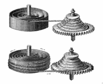 Now for the watch nerdery. The fussee is a spindle attached to a chain that winds the mainspring barrel. The fussee allows the proper amount of force to be meted out to the “transmission” over time because as a spring uncoils it loses a bit of its power. This system, created by Breguet in the late 1700s, has been in use since then.