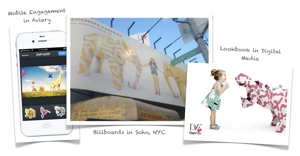 Coinciding with a wider campaign for Diane von Furstenberg’s collection of clothing exclusively for GapKids and babyGap, Aviary is adding a custom sticker, frame and filter pack that fits in with the clothing’s safari motif. The hope is that whether people are using Aviary’s own app, or one of its partner apps like Tango, PicStitch, Muzy, fans of the clothing line will use the customizations for their photos, thus spreading the word about the new clothing line.