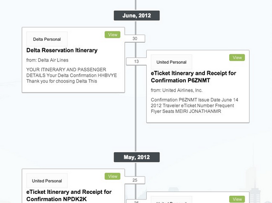 Essentially, the new tool collects users’ travel emails in a searchable timeline-type interface, which makes this data easier to parse. In a way, it’s not unlike the capabilities offered by TripIt, while focusing more on aggregating user travel data in a single interface, giving your travel info its own dedicated hub, rather than having it be drowned out in the noise of your inbox.