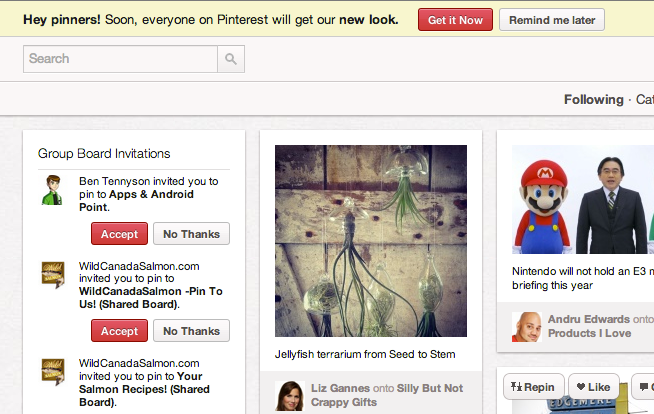 If you’re still rocking the old design on Pinterest, just click “Get it now” after you log in: