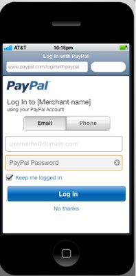 Now developers and merchants can enable Log In With PayPal on mobile sites. Consumers only need to remember one username and password (or mobile number and pin) to sign in, and have credit card and shipping address information filled in automatically. PayPal feels that there is huge potential for the technology on mobile since many consumers abandon their shopping carts when having to remember multiple passwords or fill in forms with shipping and billing info on phones.