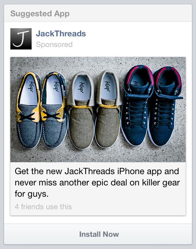 As I detailed yesterday, the app stores are becoming increasingly overloaded as every type of business goes mobile. Developers need a way to get their apps discovered, creating a massive opportunity of for Facebook’s app install ads which launched in October. These lets developers promote their apps in the mobile news feed with a large image, description, and “install now” button that opens the app’s page in appropriate app store. By combining Facebook’s massive mobile user base with its app install ads, Facebook is becoming the paid gateway to app traction.