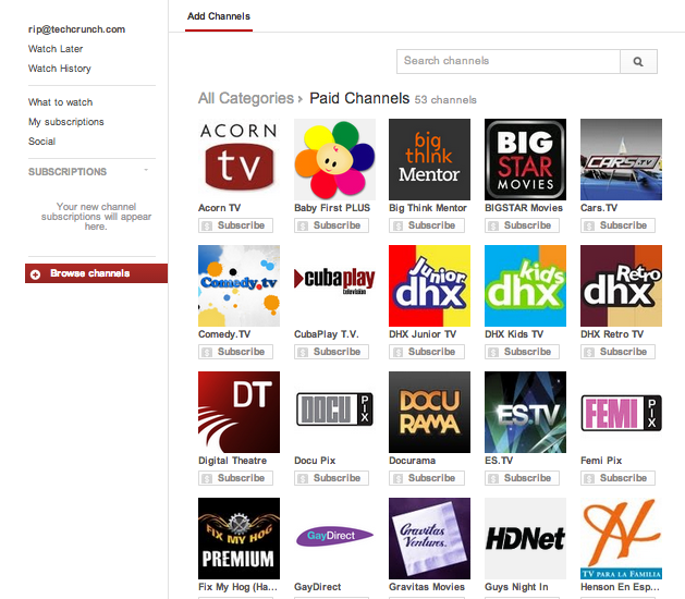 Nonetheless, the company is going to use paid subscriptions in an attempt to attract new partners, new content creator and, we assume, more dollars — although YouTube doesn’t specify whether it will be taking a cut of subscriptions or not. YouTube is clearly aware of the success Hulu, Netflix, Vimeo and other video sites have been having with subscription and on-demand models, and it wants to become more attractive to film and TV networks, studios and producers.