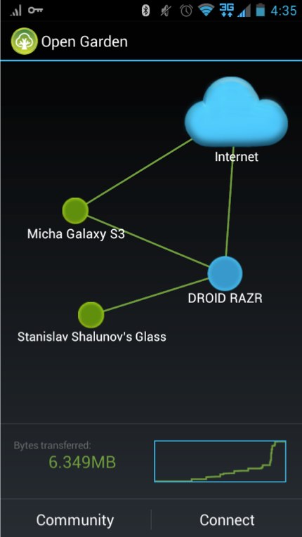Open Garden, the San Francisco-based startup that allows Android, Windows and Mac users to create mesh networks between their devices to share Internet connections, today announced that it has managed to get Google Glass to connect to its network. This matters because Glass users typically need a tethering plan to connect to the Internet (which is pretty much essential to using Glass). Those plans typically cost around $20 extra, depending on the data plan and carrier. With Open Garden, users can just use the service to connect to their phones without paying extra.