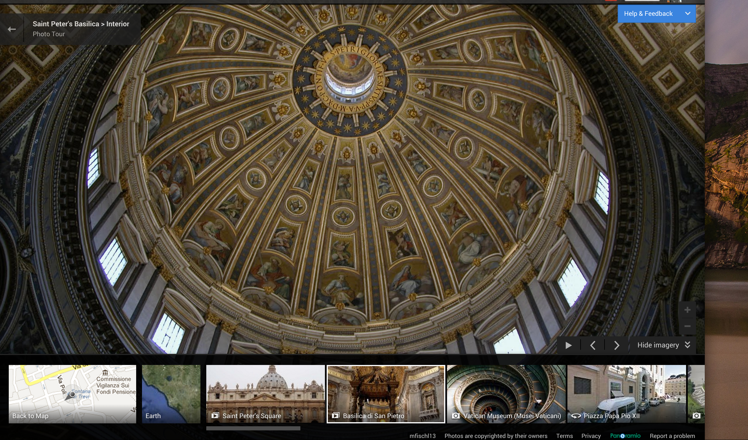 My favorite part has to be the photo tours, which stitches the photos taken by Google, as well as users, and morphs them all together into a “walk-through” tour. This works really well for big tourist destinations, like this example in Rome: