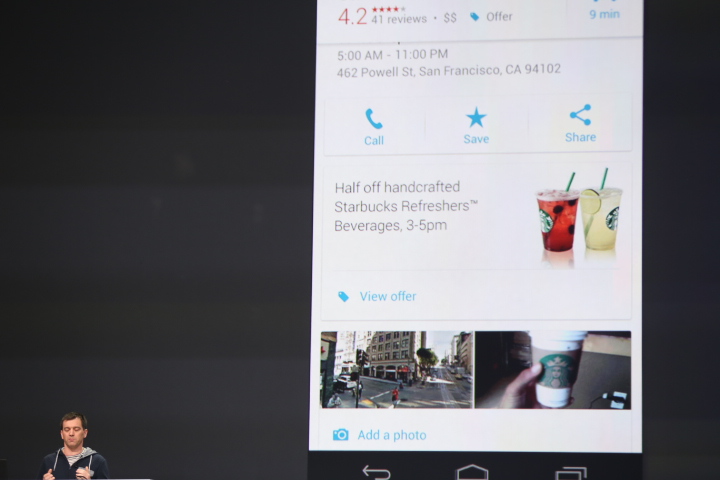Graf noted that Google Maps for the iPhone was a “tremendous success” (and gave users more accurate info than Apple’s own maps). The new Maps experience, however, is meant to be more personal than earlier versions. Users can now rate restaurants and other local businesses directly from maps, using a new five-star ratings scale instead of the usual 30-point Zagat scale.