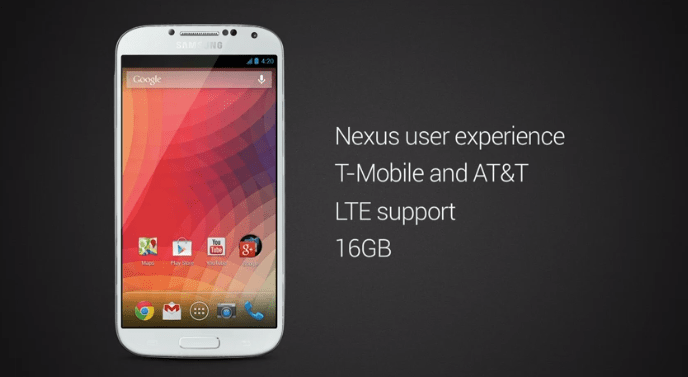 Google is offering a version of the Samsung Galaxy S4, arguably one of the top current Android devices, with Jelly Bean 4.2 unlocked on Google Play beginning June 26, the company revealed at I/O today. The news is big because it’s the first non-Nexus device to get blessed with this opportunity, and Google says it will be updated in time with all other Nexus devices.