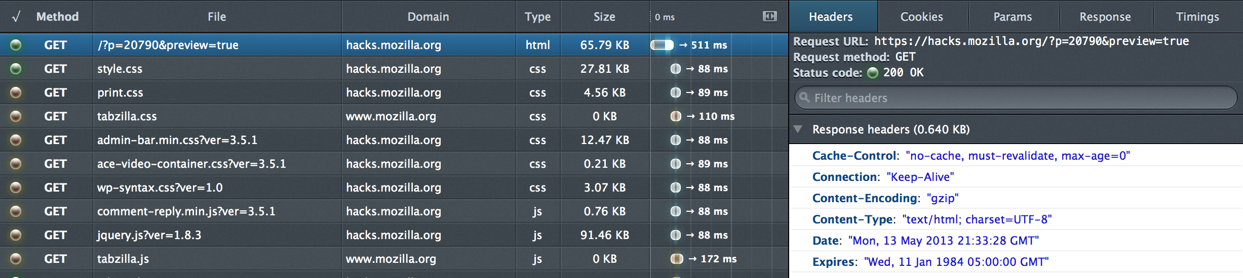 The focus of this release is clearly on developers, though. Firefox Aurora now features a new network monitor that provides a standard waterfall timeline view of network activity on any given page. This data has always been available, but only through the Web Console, which wasn’t very easy to interpret.