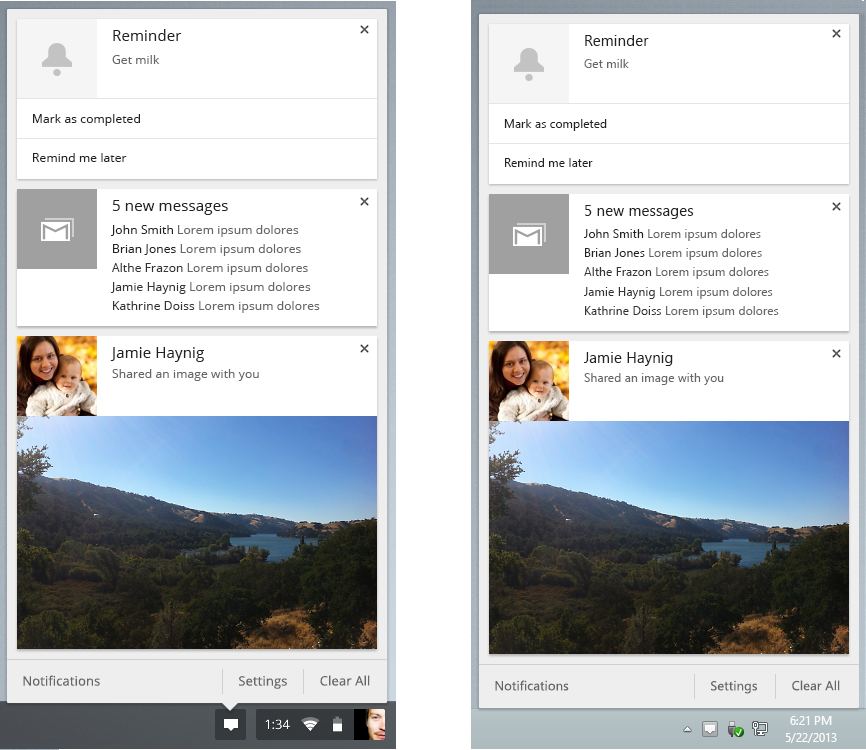 The new notification center will be available through the Windows system tray or from the Chrome OS launcher.