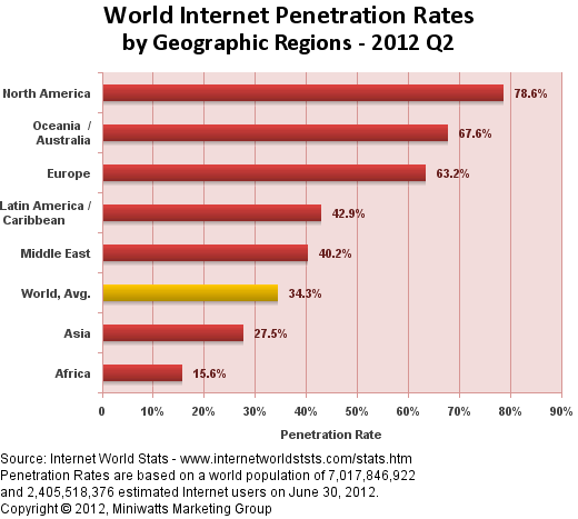 According to Internet World Stats, Africa’s “Internet penetration rate” was a paltry 15.6 percent as of June 2012. Compare that to 78.6 percent in the United States, and it’s clear that Google needs to move outside of the U.S. to go after its next group of “customers.”