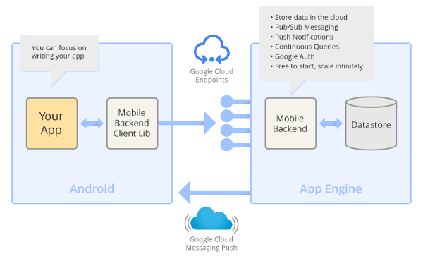 Google today announced the launch of its Mobile Backend Starter that allows Android developers to deploy a basic cloud infrastructure for their apps that runs on Google’s App Engine. Mobile Backend Starter provides developers with a one-click deployable mobile backend and a client-side framework for Android that provides them with storage services, access to Google Cloud Messaging, continuous queries and Google’s authentication and authorization features.