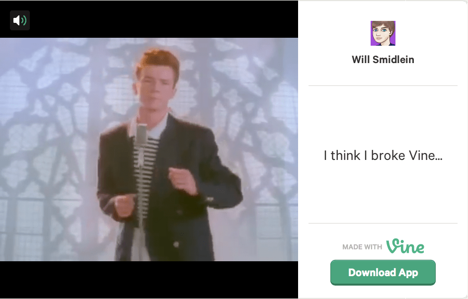 Update: Obviously, the Vine is down now.