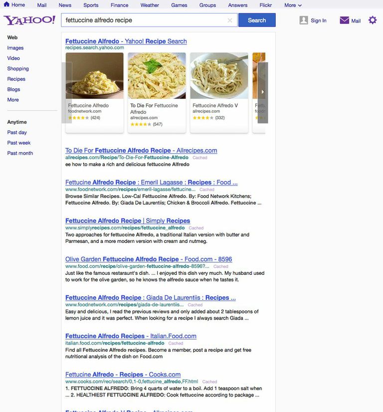 As you can see by Yahoo’s own amazing animated GIF, results now appear higher up on the page, thanks to a single-line navigation bar that appears at the top-most edge of the browser window. Yahoo’s branding is also now smaller, and there’s a sign-in area right of the search bar itself. Along the left-hand side you have a simple navigation menu, allowing you to change the search category type and choose from different time options for results.