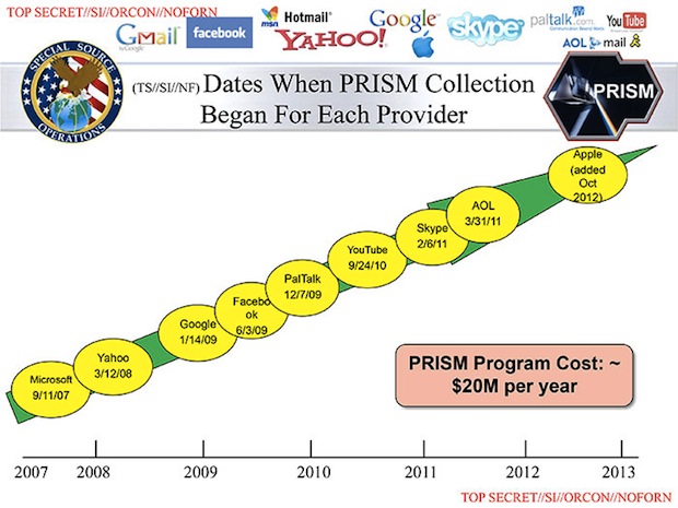 PRISM is real. Even the U.S. government now acknowledges its existence. The question that remains unanswered, though, is how involved Google, Apple, Yahoo, AOL, Paltalk and Facebook were. These companies are all named as “providers” on the original slides, including the dates the NSA started collecting data from them. The reporter with the most direct access to these documents, Glenn Greenwald, has also now repeatedly stated that the NSA had “direct access” to these company’s servers or seized this data from them.