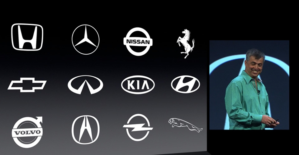 Cue’s revelation at WWDC confirmed some curious reports from April that Apple had been pushing to bring its influence into cars within the next few months. Apple isn’t exactly new to the automotive space (it’s enjoyed a close relationship with Volkswagen dating back to the days of the 3rd generation iPod), and this new approach is much savvier than the notion of a completely distinct Apple iCar. After all, why limit yourself to enhancing the in-car experience of a single vehicle when you can influence a slew of them all at once?