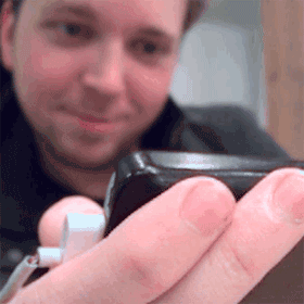 Plus, as mentioned, you can make totally crazy looking GIFs. Check out these total dreamboat (*cough*) examples of my big dumb head recording the above video. On the left is the parallax shifting effect; on the right is the foreground/background refocusing effect (And in the center of each is my busted-ass iPhone cable):