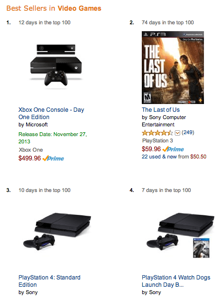 In typical Amazon fashion, the company isn’t revealing specifics about how many total pre-orders have been processed so far, but the company is saying in no uncertain terms that there’s ample demand. The Xbox One and the PlayStation 4 occupy two of the top three spots in the Amazon Best Sellers list for Video Games, for instance (critical smash hit The Last of Us occupies spot two). Additionally, retail store pre-orders of the consoles appear to be strong, too, with some locations selling out of the Xbox One quickly following Microsoft’s decision to reverse its position on used games and DRM.
