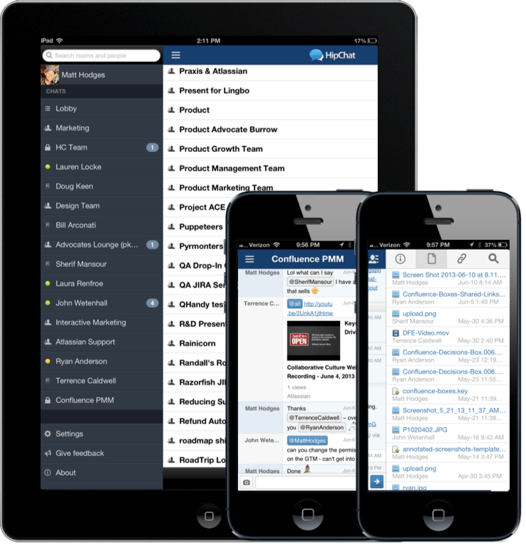 HipChat co-founder Pete Curley told me all about the changes made to both apps, which include a lot of behind-the-scenes improvements focusing on stability and performance, as well as totally new user interfaces that offer things like vertical tab navigation on the Mac for active chats, Notification Center support and more. The HipChat for iOS revamp adds quick switching between open rooms via a lefthand sidebar; file, link and chat history plus search; new swipe gestures like those you’ll find in system apps in iOS 7; and much more convenient photo sharing.
