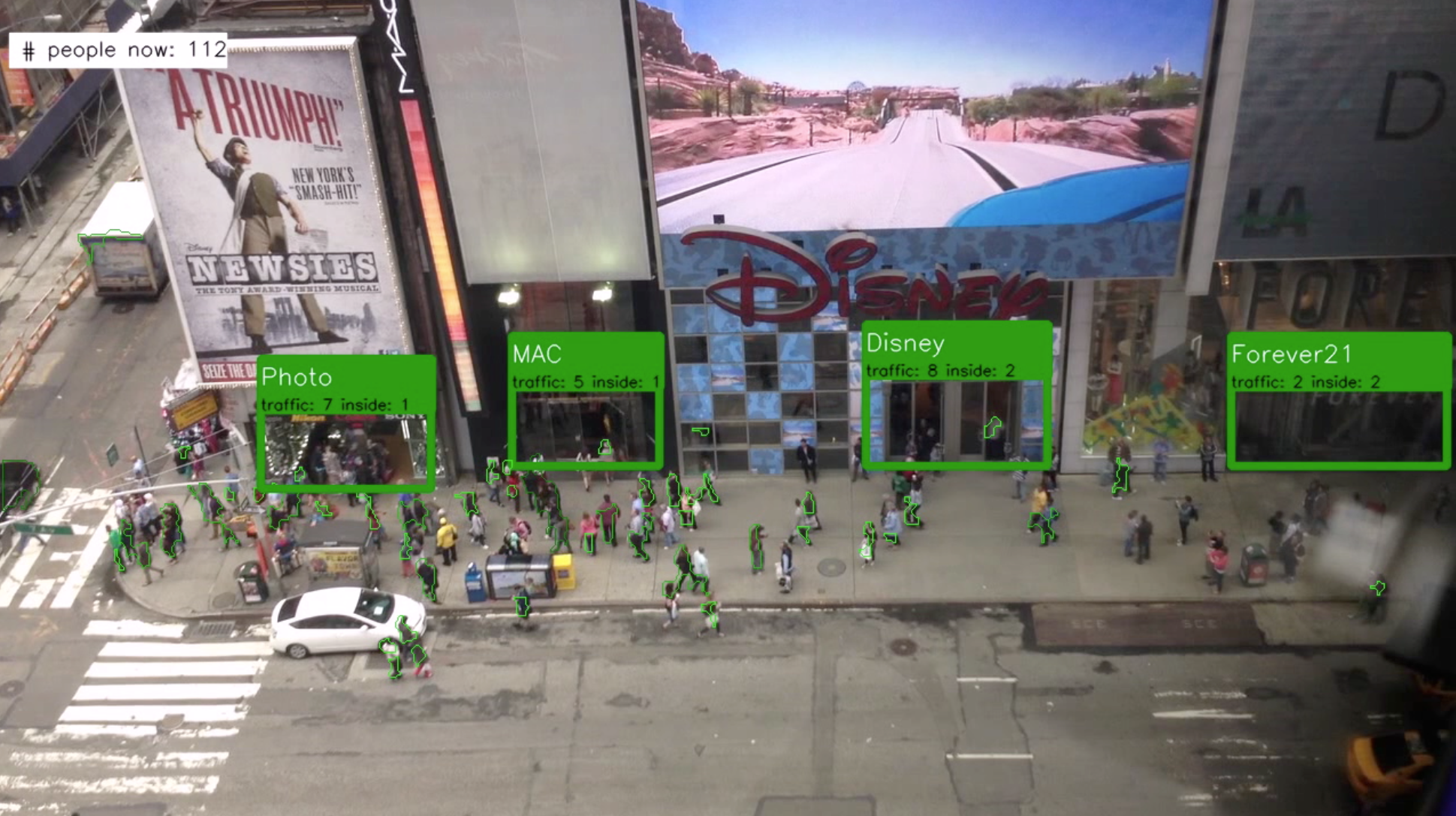 Using highly sophisticated algorithms and the livestreams already available online covering Manhattan, Placemeter can determine how crowded that Forever 21 is or how packed the coffee shop around the corner is by counting the people walking in and out automatically. In fact, the team only needs 2,000 more cameras deployed to cover the entirety of Manhattan.