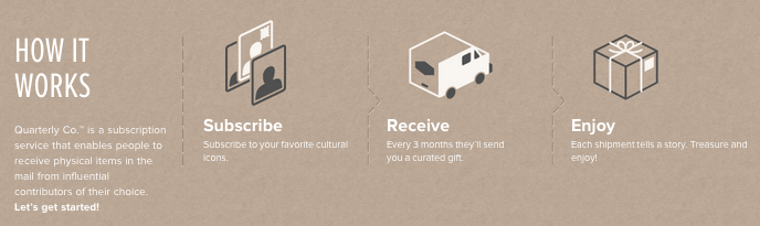 But you know what helps give Quarterly some critical street cred in a noisy market? The fact that its new CEO, Mitch Lowe, is the co-founder one of the largest subscription-based services out there, in Netflix, and helped lead movie rental giant Redbox as an early executive before eventually taking over as president. Lowe initially joined Quarterly as an advisor, but after experiencing some hiccups, according to PandoDaily, he took over as chief executive from former GOOD Magazine editor, Zach Frechette, in September.